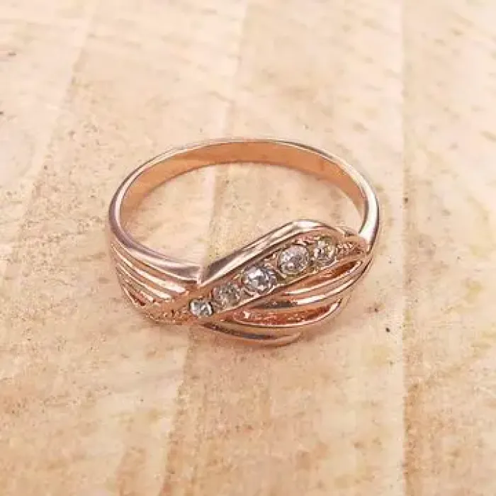 Кольцо из бижутерного сплава со стразами Сваровски и покрытием розовым золотом.