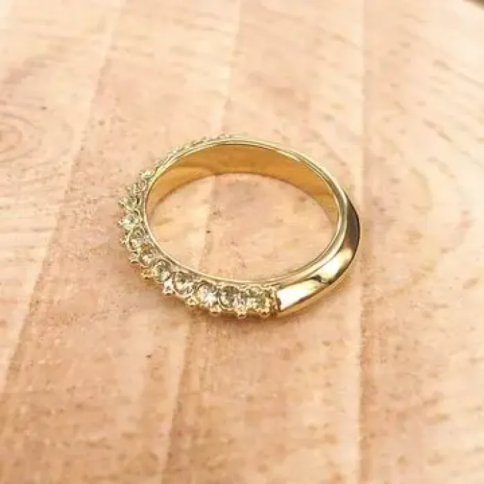 Кольцо из бижутерного сплава с вставками из страз Сваровски золотистого цвета.