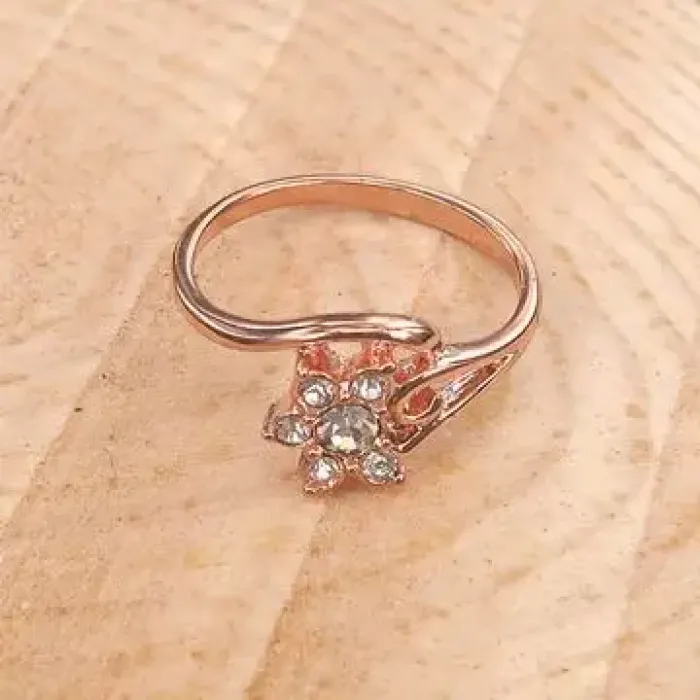 Кольцо из бижутерного сплава со стразами Сваровски и покрытием розовым золотом.