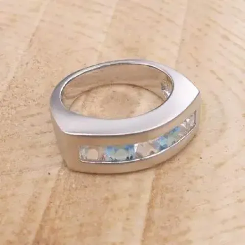 Кольцо из бижутерного сплава серебристого цвета с декоративными вставками из страз.