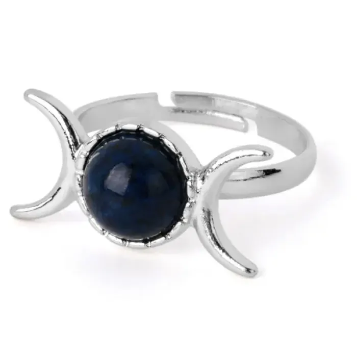Безразмерное кольцо в форме полумесяца с вставкой из натурального лазурита.