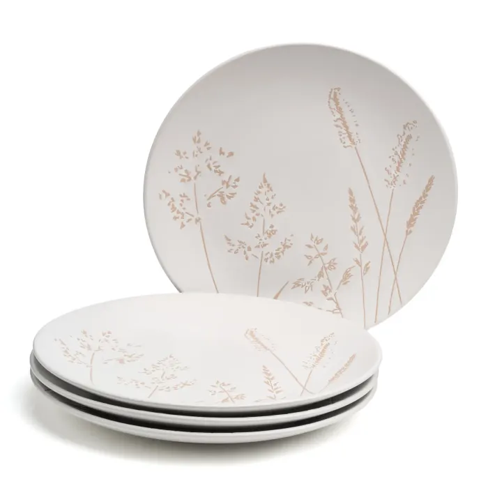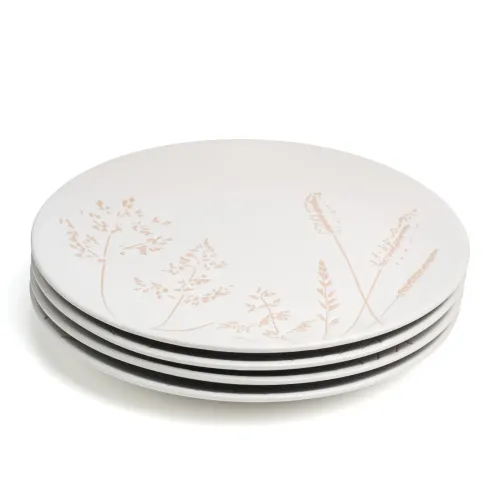 Набор обеденных тарелок Grasses от бренда Bronco включает четыре керамические тарелки диаметром 27 см. Посуда предназначена для сервировки вторых блюд и сочетает классическую форму с рельефным цветочным орнаментом.