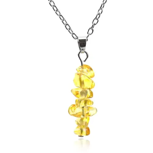 Кулон с натуральным камнем цитрин на цепочке. Материал — бижутерный сплав.