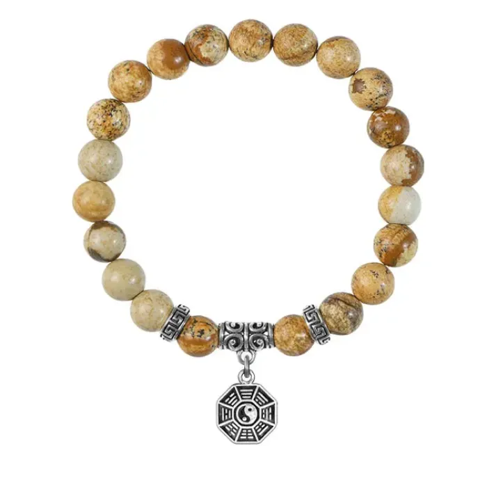 Браслет из натуральной песочной яшмы с подвеской-талисманом в виде символа Багуа.