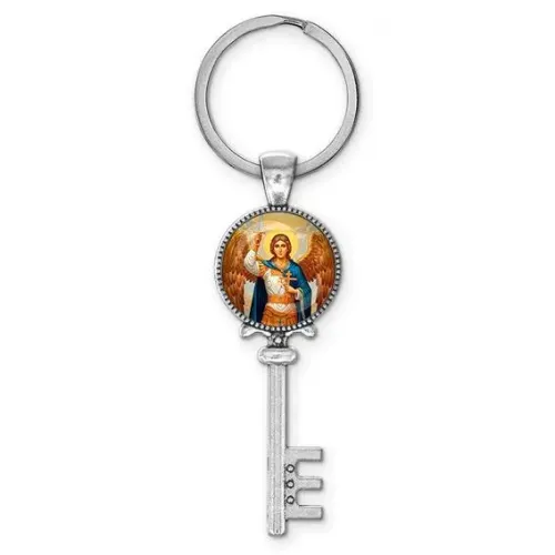 Брелок с изображением Архангела Михаила — это не только практичный аксессуар, но и символ защиты и поддержки. Изготовленный из бижутерного сплава с покрытием под бронзу и стекла, он станет отличным дополнением к любому набору ключей.