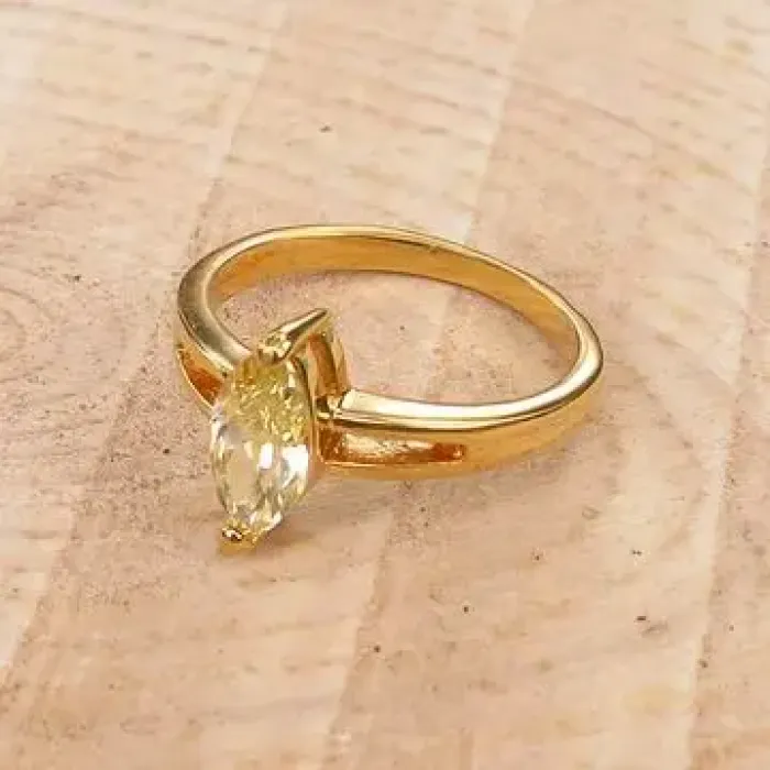 Кольцо из бижутерного сплава с кристаллом Сваровски золотистого цвета.