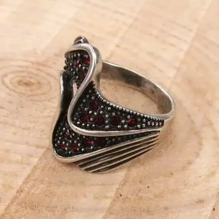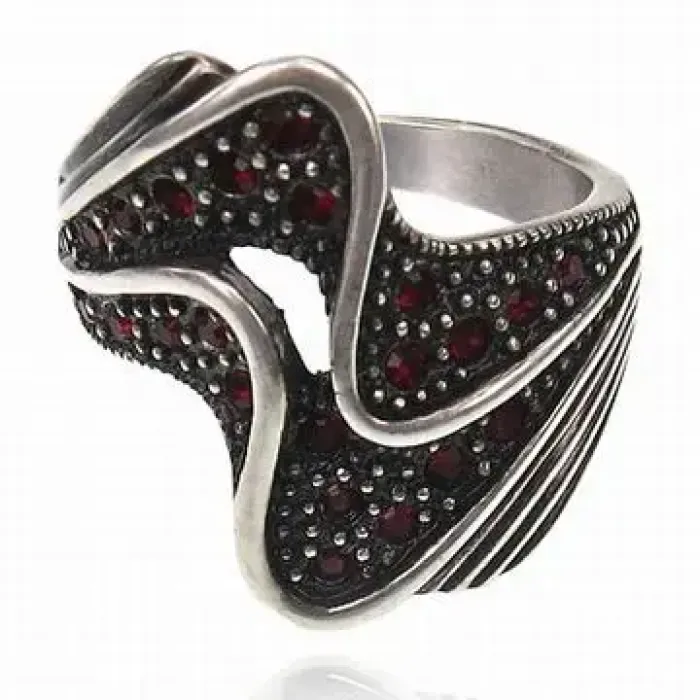 Кольцо из бижутерного сплава с серебряным покрытием и вставками страз. Дизайн в виде волны.