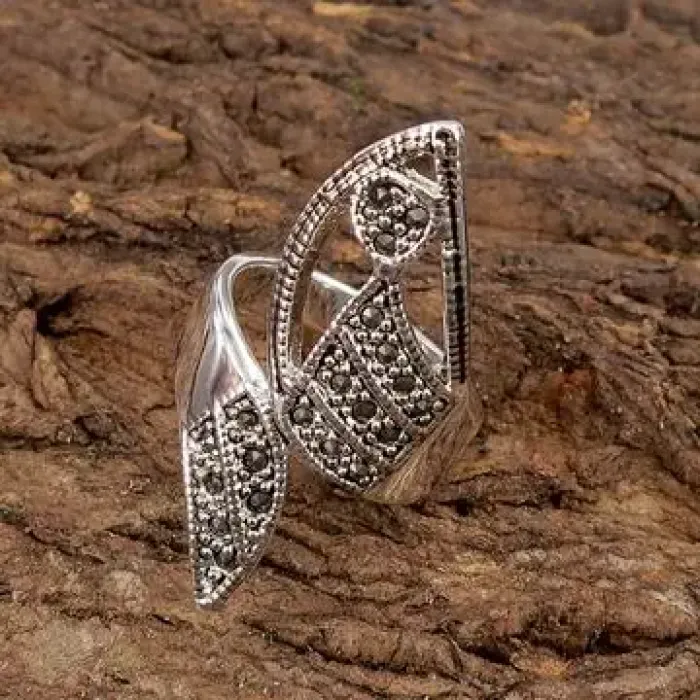 Кольцо из бижутерного сплава со вставками из страз, серебристого цвета.