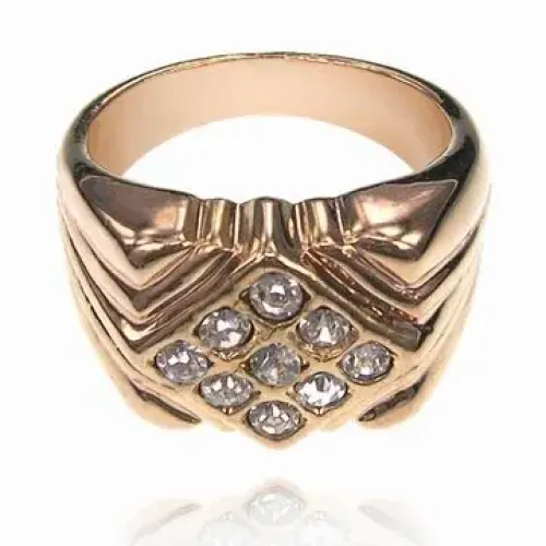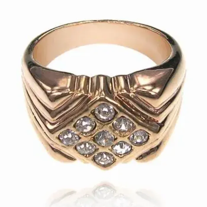 Кольцо из бижутерного сплава с золотым покрытием и стразами в форме ромба.