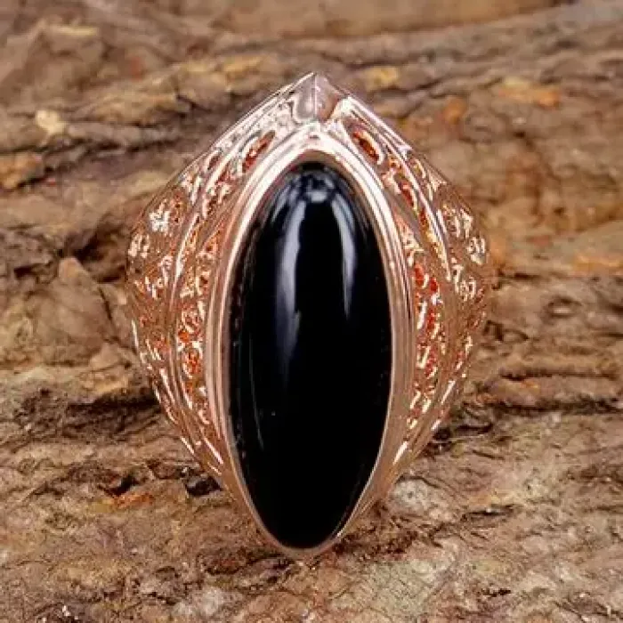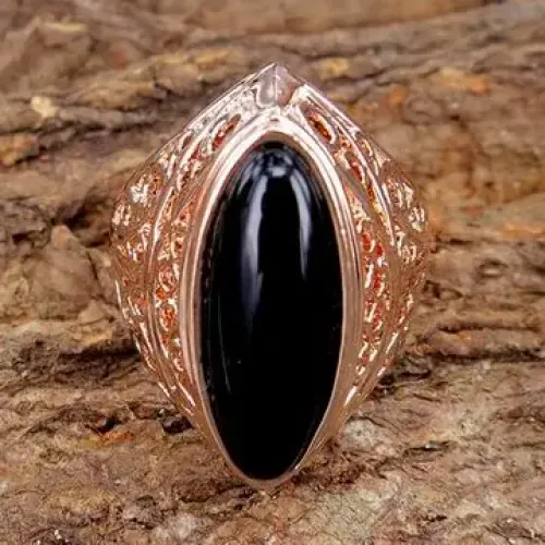 Кольцо из бижутерного сплава с филигранным дизайном, стеклянной вставкой и покрытием под розовое золото.