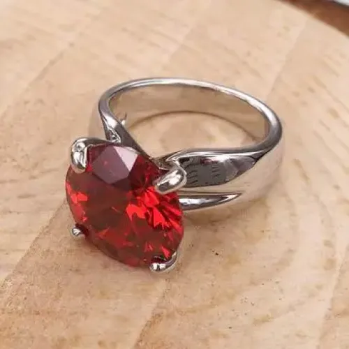 Кольцо из бижутерного сплава с фианитом и родиевым покрытием.