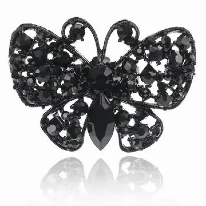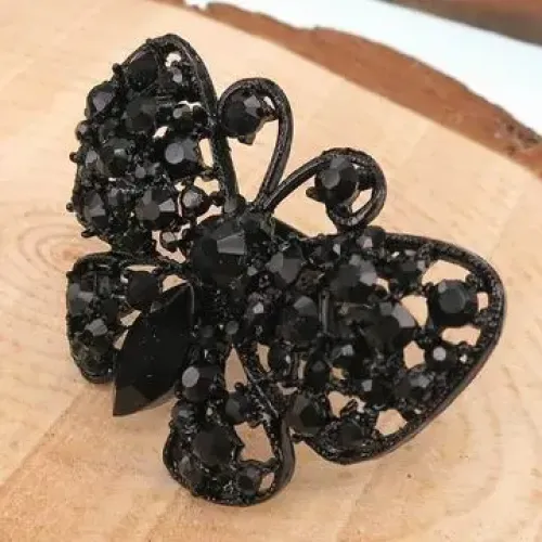 Безразмерное кольцо в форме бабочки со стразами, цвет черный.