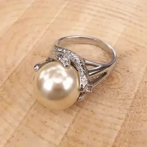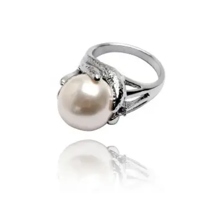 Кольцо из бижутерного сплава с искусственным жемчугом.
