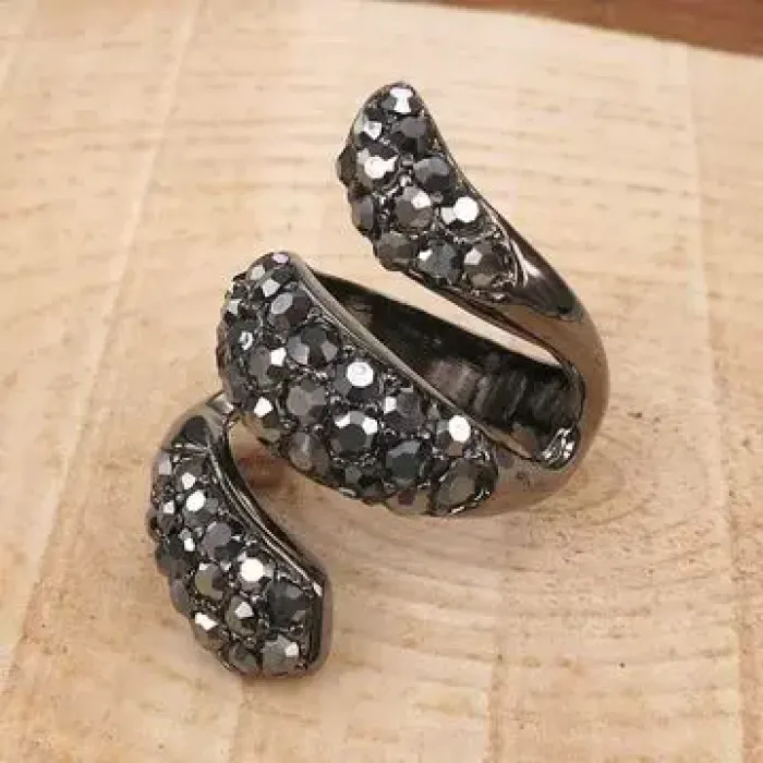 Бижутерное кольцо с декоративными стразами. Цвет черный.