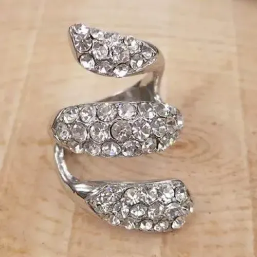Бижутерное кольцо со стразами Сваровски серебряного цвета.