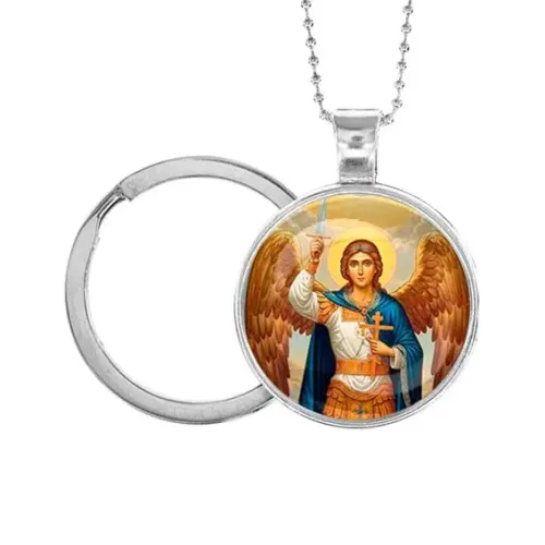 Кулон-брелок с изображением Архангела Михаила — это стильный аксессуар, который сочетает в себе красоту и символику. Этот предмет традиционно ассоциируется с защитой и благословением. Изготовленный из бижутерного сплава с покрытием под серебро и стекла, он станет не только украшением, но и оберегом. Основные особенности: