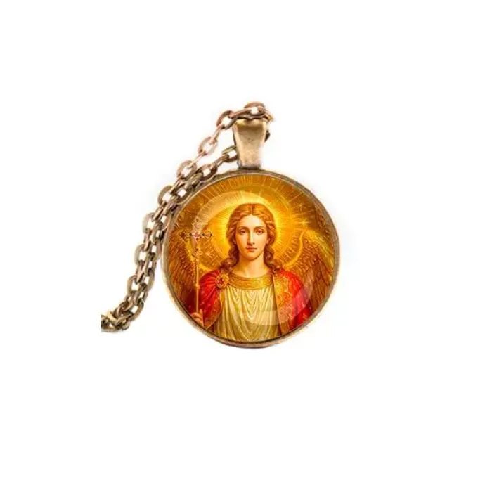 Кулон с изображением Архангела Михаила — это не только стильный аксессуар, но и символ защиты и силы. Изготовленный из бижутерного сплава с покрытием под бронзу и стекла, он сочетает в себе элегантность и духовное значение. Основные особенности:
