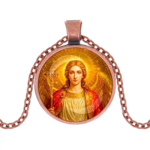 Кулон с изображением Архангела Михаила — это не только стильный аксессуар, но и символ защиты и духовной силы. Выполненный из бижутерного сплава с покрытием под медь и стекла, этот кулон станет отличным дополнением к любому образу.