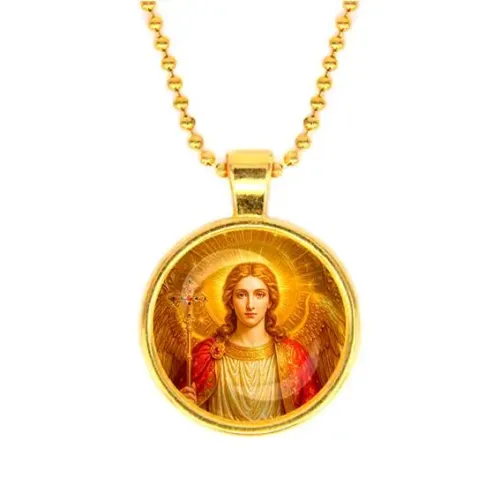 Кулон с изображением Архангела Михаила — это не только стильный аксессуар, но и символ защиты и благословения. Изготовленный из бижутерного сплава с покрытием под золото и стекла, этот кулон станет прекрасным дополнением к любому образу. Основные особенности включают: