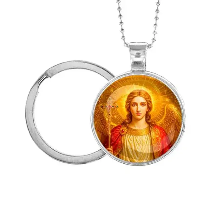 Кулон-брелок с изображением Архангела Михаила — это стильный аксессуар, который сочетает в себе красоту и символику. Этот предмет традиционно ассоциируется с защитой и благословением. Изготовленный из бижутерного сплава с покрытием под серебро и стекла, кулон не только привлекает внимание своим дизайном, но и обладает прочностью. Основные особенности: