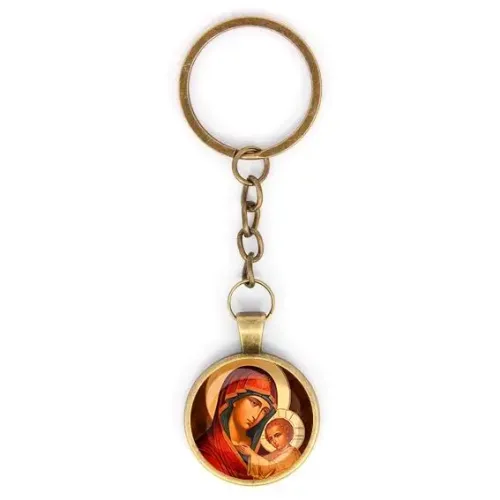 Круглый брелок, цвет бронза, с цепочкой, Богородица с Иисусом C1119018