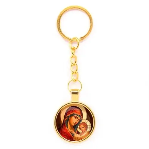 Круглый брелок, цвет золото, с цепочкой, Богородица с Иисусом C1119020