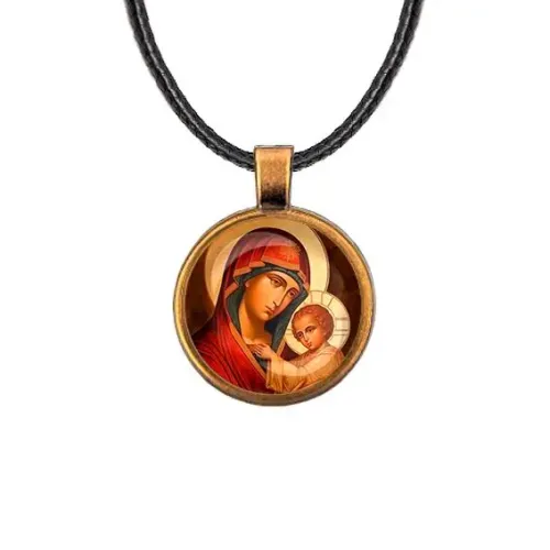 Кулон, цвет бронза, со шнурком, Богородица с Иисусом C1119029
