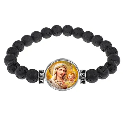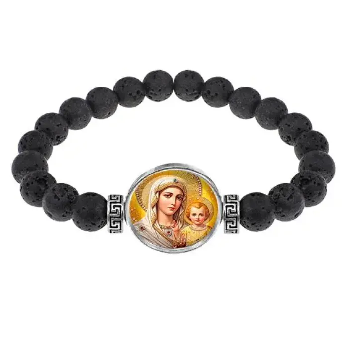 Стрейч-браслет из натуральной лавы диаметром 8 мм с изображением под выпуклой стеклянной линзой. Внутренний диаметр составляет около 5,5 см. Изготовлен из лавы, бижутерного сплава с покрытием под серебро и стекла. Лава известна своими свойствами впитывать эфирные масла, что делает этот браслет идеальным выбором для аромабижутерии. Нанесение нескольких капель эфирного масла на бусины позволяет создать уникальные ароматические композиции и насладиться их эффектами в течение дня.