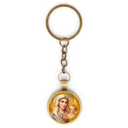Круглый брелок, цвет бронза, с цепочкой, Богородица с Иисусом C1120018