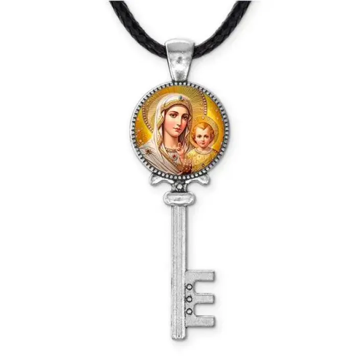 Кулон ключ, цвет серебро, со шнурком, Богородица с Иисусом C1120043