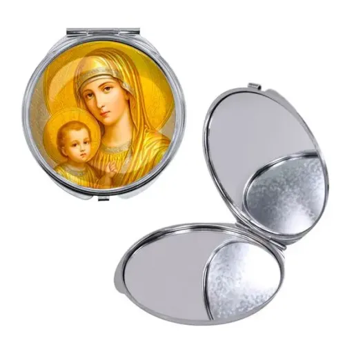 Круглое складное зеркало, цвет серебро, Богородица с Иисусом C1121016