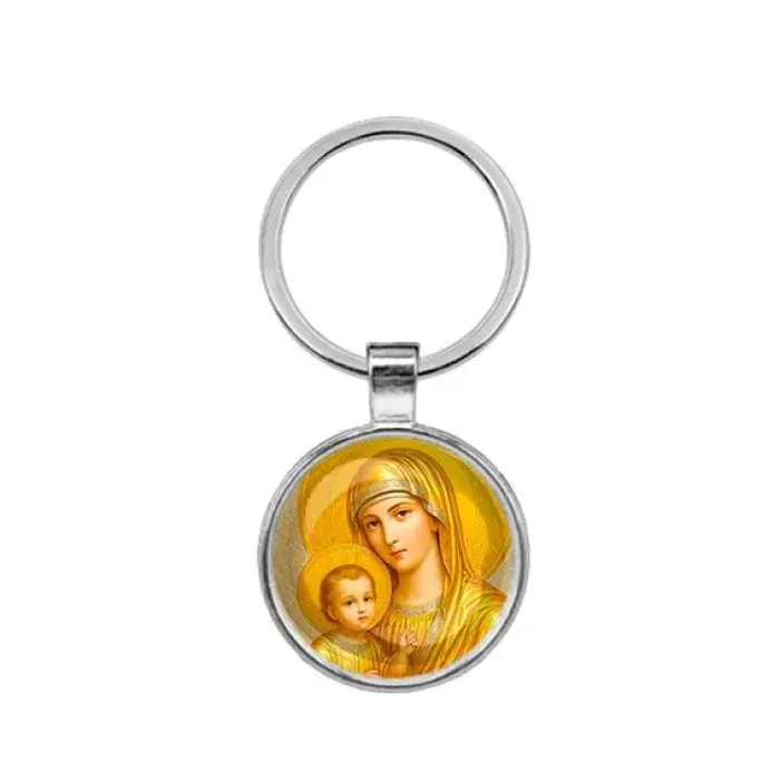 Круглый брелок, цвет серебро, Богородица с Иисусом C1121021