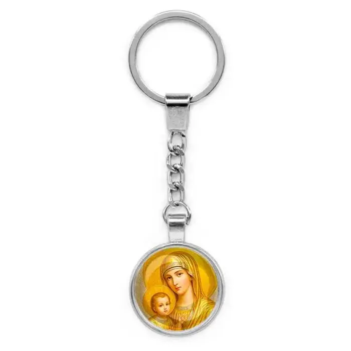 Круглый брелок, цвет серебро, с цепочкой, Богородица с Иисусом C1121022