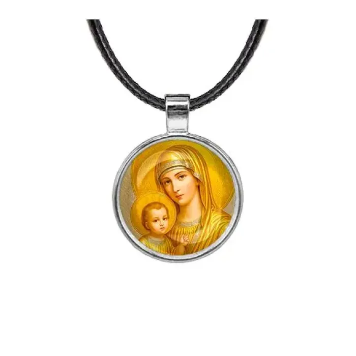 Кулон, цвет серебро, со шнурком, Богородица с Иисусом C1121027