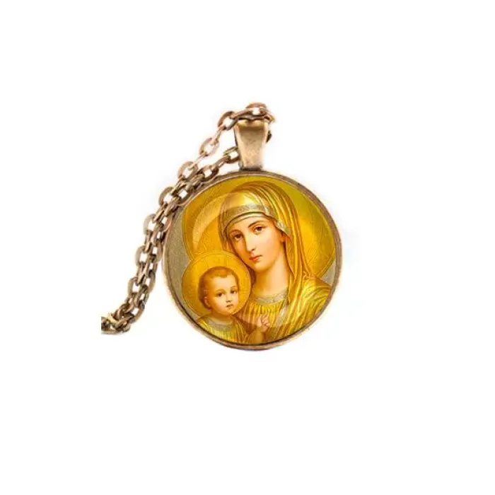 Кулон с изображением Богородицы и Иисуса — это не только стильный аксессуар, но и символ веры и защиты. Изготовленный из бижутерного сплава с покрытием под бронзу и стеклом, он станет прекрасным дополнением к любому образу. Основные особенности:
