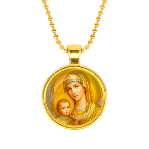 Кулон с изображением Богородицы и Иисуса — это не только стильный аксессуар, но и символ веры и защиты. Он выполнен из бижутерного сплава с покрытием под золото и дополнен стеклянной линзой, которая защищает изображение. Основные особенности: