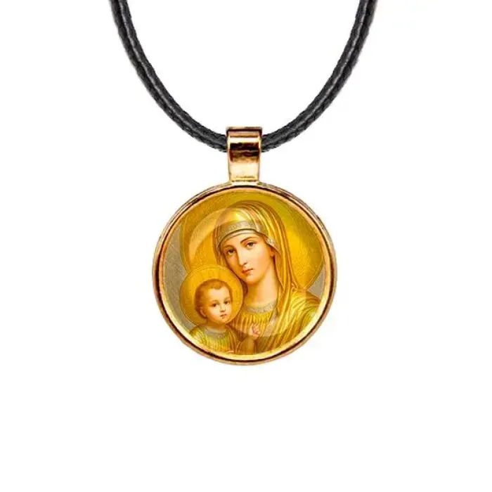 Кулон, цвет золото, со шнурком, Богородица с Иисусом C1121033