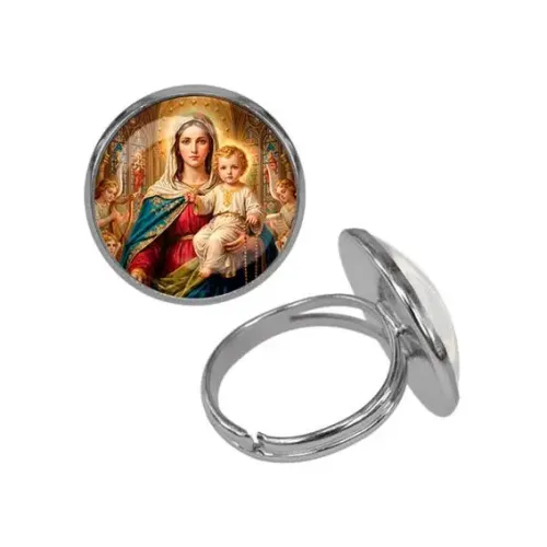 Кольцо металлическое, цвет серебро, Богородица с Иисусом C1122015