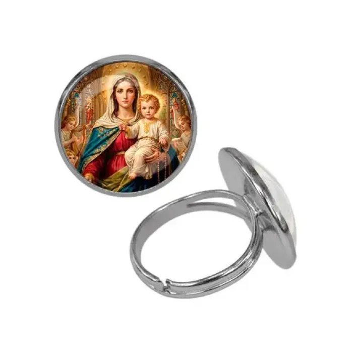Кольцо с изображением Богородицы и Иисуса — это не просто украшение, а символ веры и духовности. Безразмерная модель диаметром 20 мм выполнена из бижутерного сплава с покрытием под серебро и стекла, что придаёт ей элегантный вид. Выпуклая стеклянная линза защищает изображение и делает кольцо особенно привлекательным. Это изделие станет прекрасным подарком для близких или элементом личной коллекции.