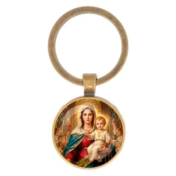 Круглый брелок, цвет бронза, Богородица с Иисусом C1122017