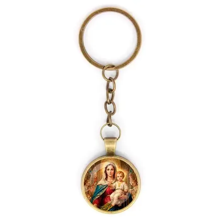Круглый брелок, цвет бронза, с цепочкой, Богородица с Иисусом C1122018