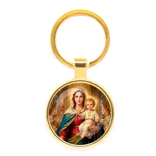 Круглый брелок, цвет золото, Богородица с Иисусом C1122019