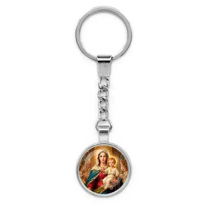 Круглый брелок, цвет серебро, с цепочкой, Богородица с Иисусом C1122022