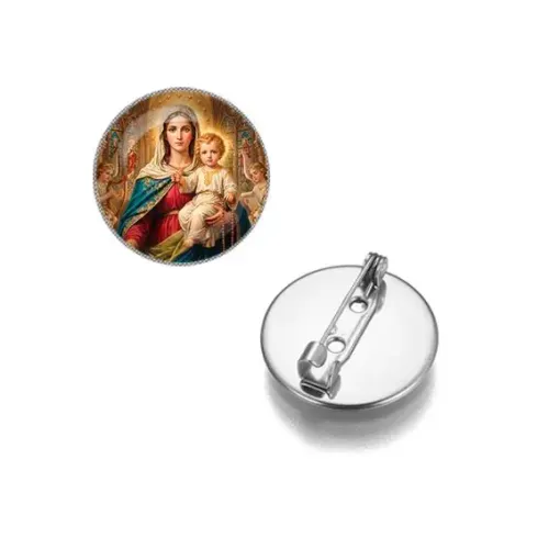 Круглый значок с изображением Богородицы и Иисуса — это не только стильный аксессуар, но и символ духовности. Изготовленный из бижутерного сплава с покрытием под серебро и стеклом, он станет прекрасным дополнением к любому наряду. Диаметр значка составляет 26 мм, а изображение защищено выпуклой стеклянной линзой, что придаёт ему особую выразительность. Такой значок может стать замечательным подарком для близких или элементом личной коллекции сувениров.