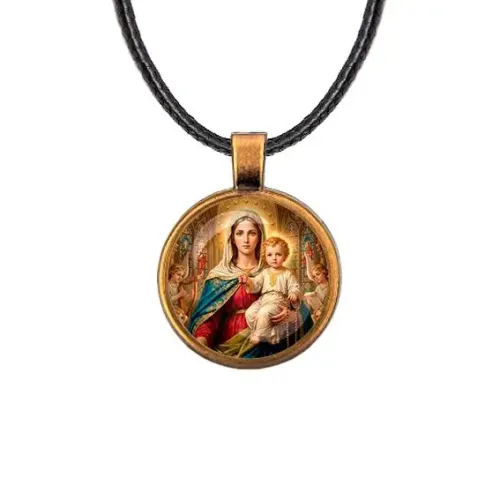 Кулон с изображением Богородицы с Иисусом — это не только стильный аксессуар, но и символ веры и надежды. Он выполнен из бижутерного сплава с покрытием под бронзу и дополнен стеклянной линзой, которая защищает изображение. Основные характеристики: диаметр кулона составляет 28 мм, а длина шнурка — 45 см. Застёжка представлена в виде замка типа лобстер, что обеспечивает надежность при ношении. Этот кулон станет прекрасным подарком для близких или украшением для себя.