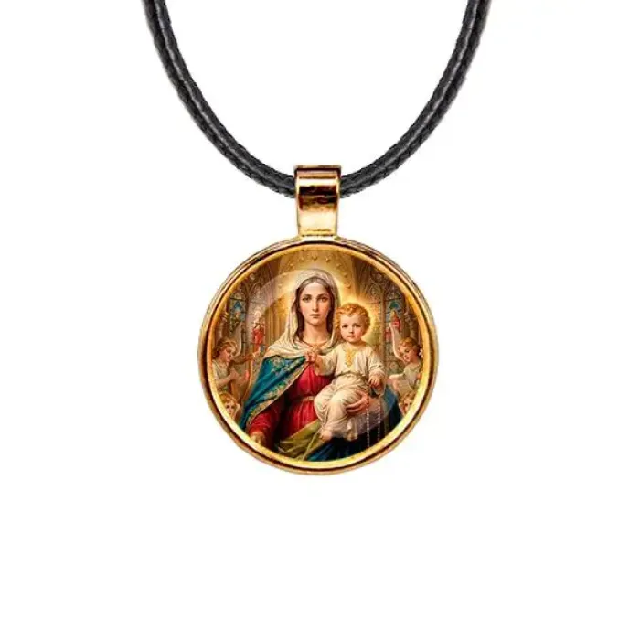 Кулон с изображением Богородицы и Иисуса — это не только стильный аксессуар, но и символ веры и надежды. Изготовленный из бижутерного сплава с покрытием под золото, он станет прекрасным дополнением к любому образу. Основные особенности: