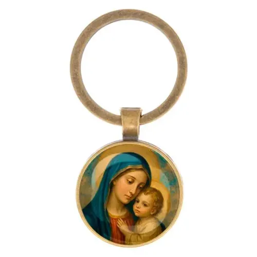 Круглый брелок, цвет бронза, Богородица с Иисусом C1123017