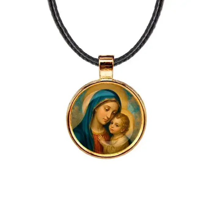 Кулон с изображением Богородицы и Иисуса — это не только стильное украшение, но и символ веры и защиты. Изготовленный из бижутерного сплава с покрытием под золото и стекла, он станет прекрасным дополнением к любому образу. Основные характеристики включают: диаметр кулона 28 мм и длину шнурка 45 см. Застёжка замок типа лобстер обеспечивает надежность ношения. Образ защищен выпуклой стеклянной линзой, что придаёт ему дополнительную выразительность.