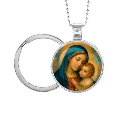 Кулон-брелок с изображением Богородицы и Иисуса — это не только стильный аксессуар, но и символ духовности. Он традиционно используется как оберег, приносящий удачу и защиту. Изготовлен из бижутерного сплава с покрытием под серебро и стекла, этот кулон-брелок сочетает в себе красоту и практичность.