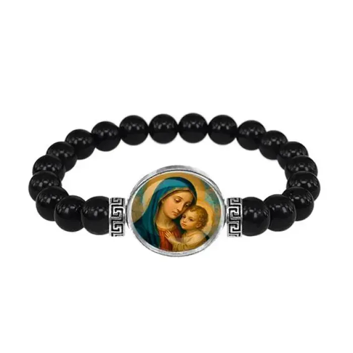 Браслет из чёрного агата, Богородица с Иисусом C1123056